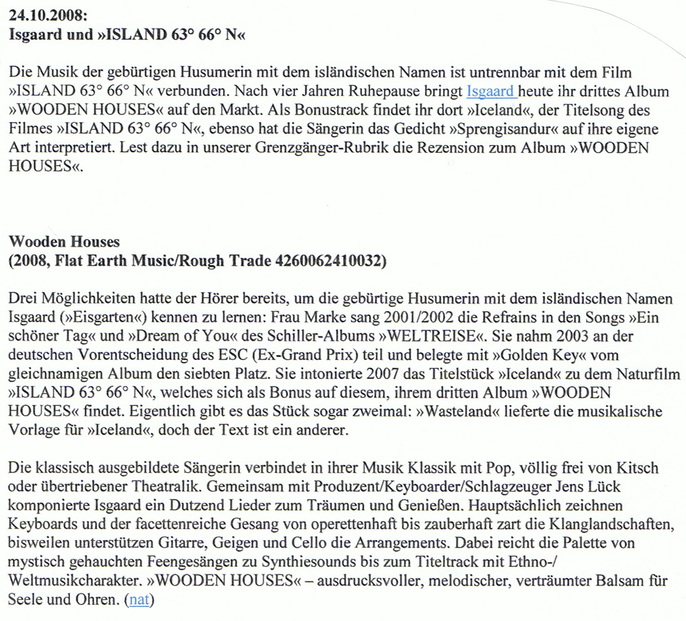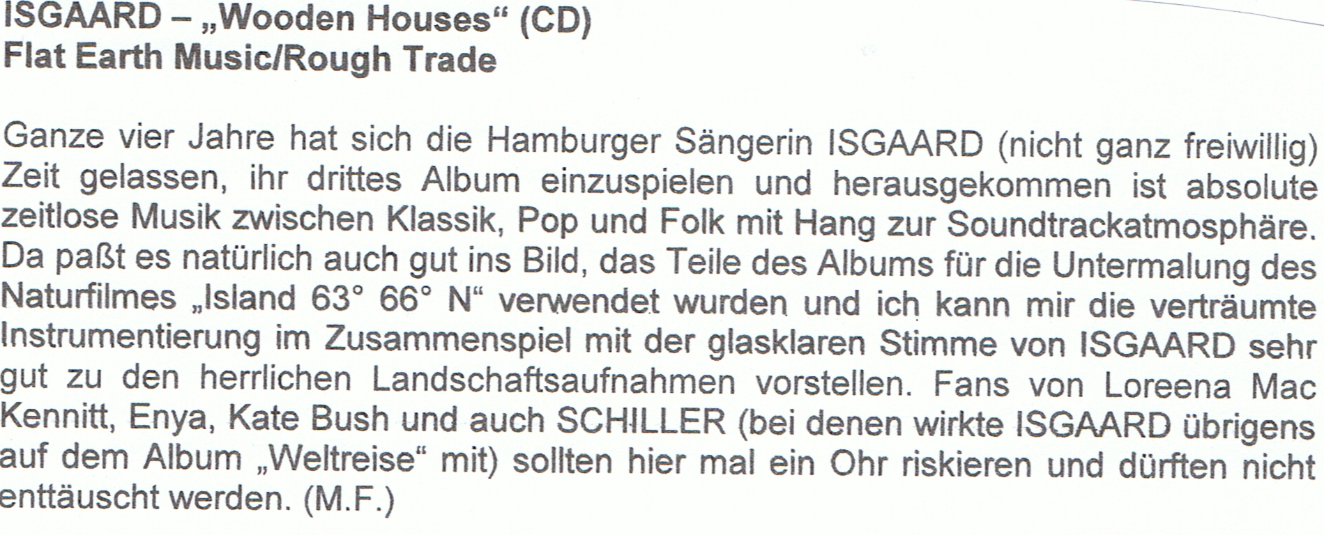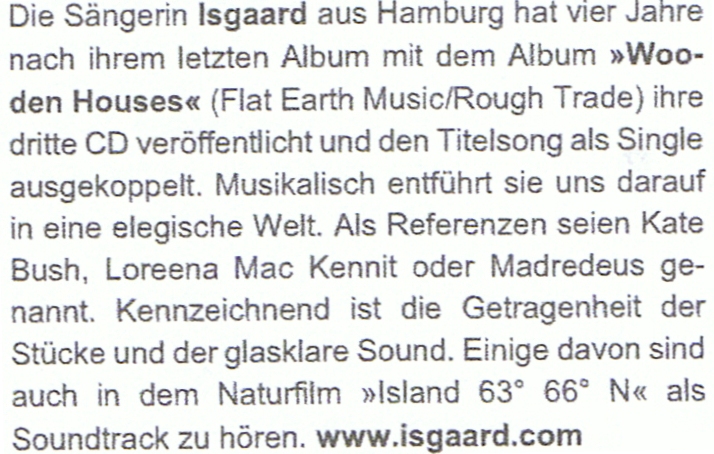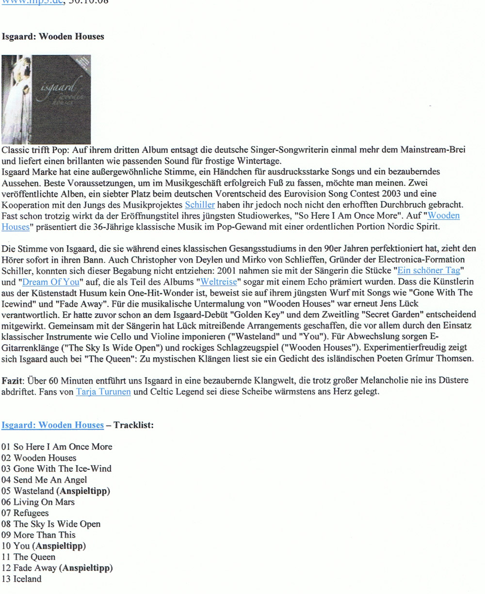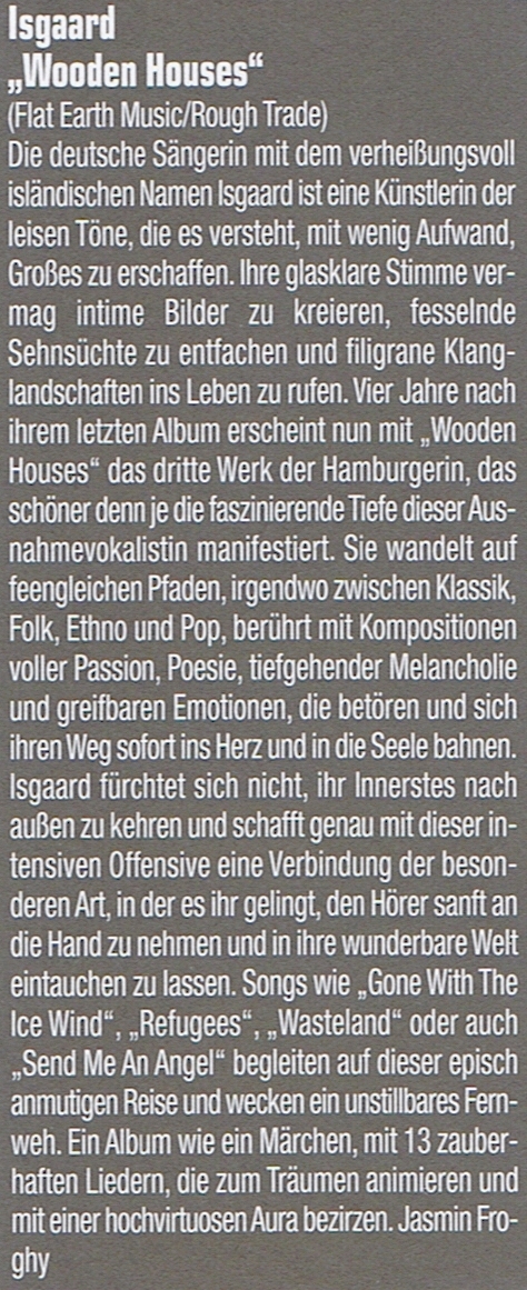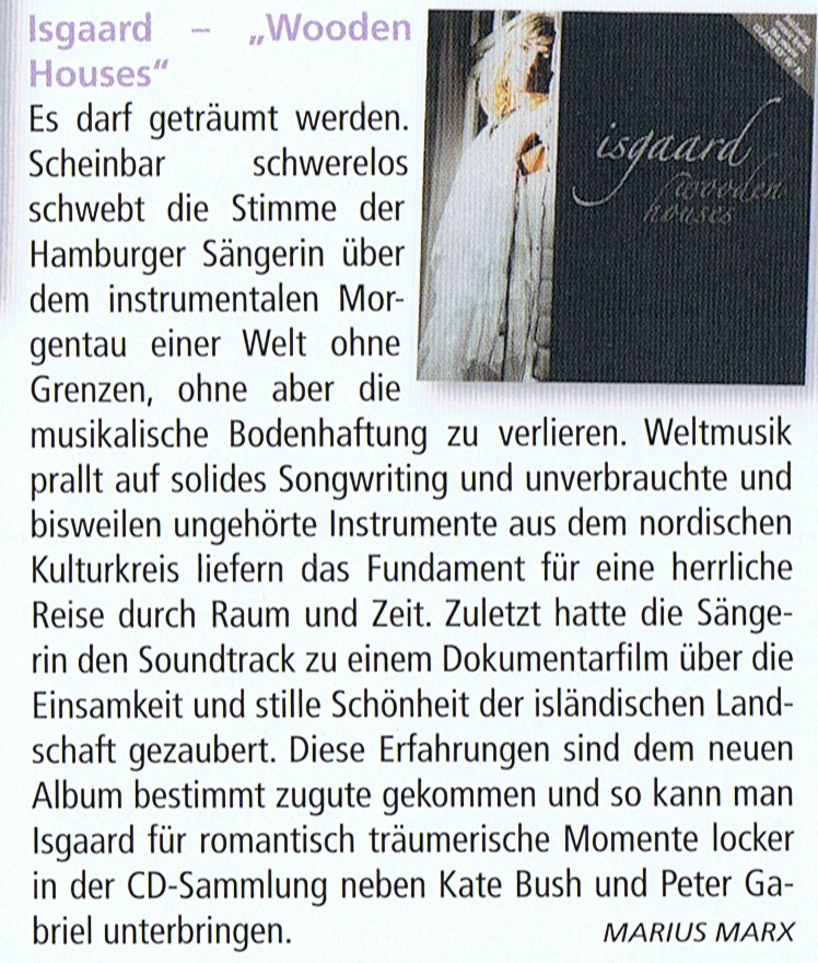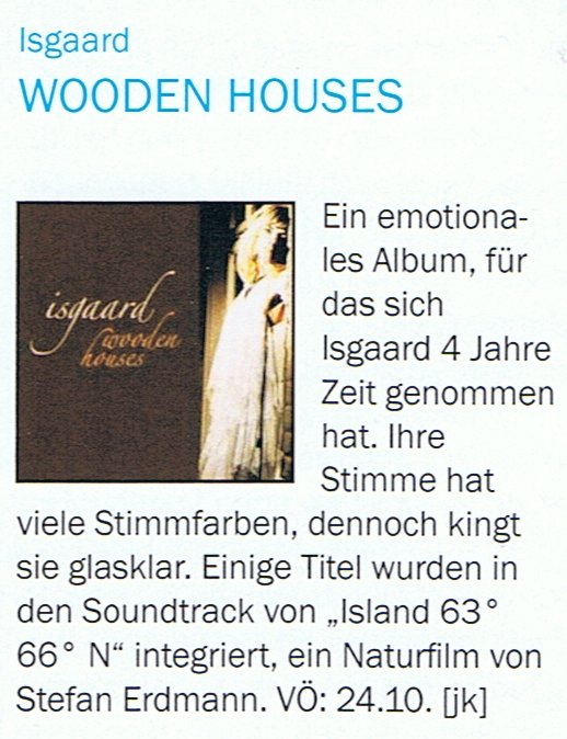 Einige Rezensionen zu „Wooden Houses“ 23. August 2011 - 0 comments Die ersten Rezensionen zum Album sind da! read more By Isgaard Category: Blog